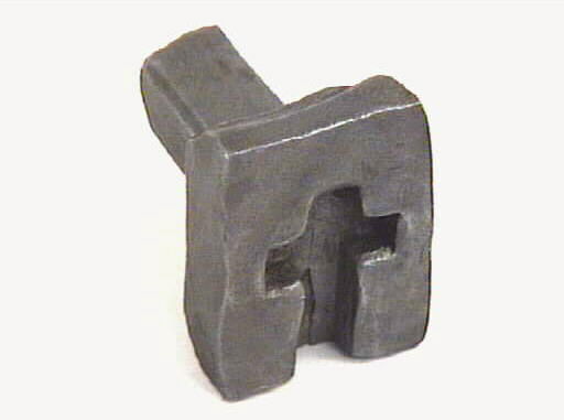 Undersänke för smide av järn i form av ett kors, vagnsdetalj. Rektangulär slagyta med ett kors försänkt. Fyrsidigt fäste för städet.
