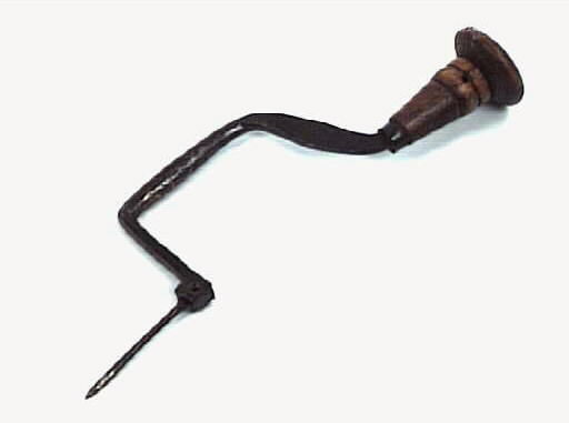 Borrsväng i järn med svarvat trähandtag.