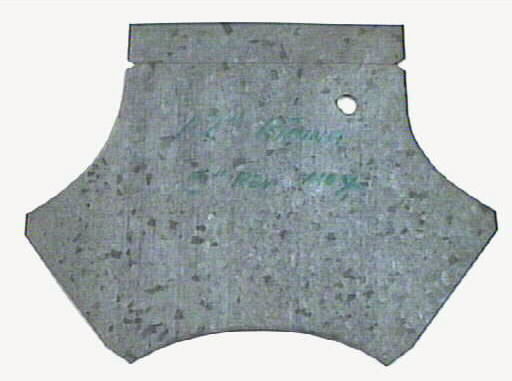Plåtmall. Modell till spänntratt eller "omkupa". Två plåtar från varje mall klipptes till, den ena kortare än den andra (markeringar och streck visar var den kortare klipptes).