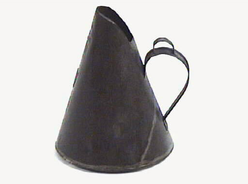 Brännvinsmått av bleckplåt med rundat handtag. Rund bottenplatta med tre kulformiga fötter. Märkt "1K 1M 7 8 8 JB".