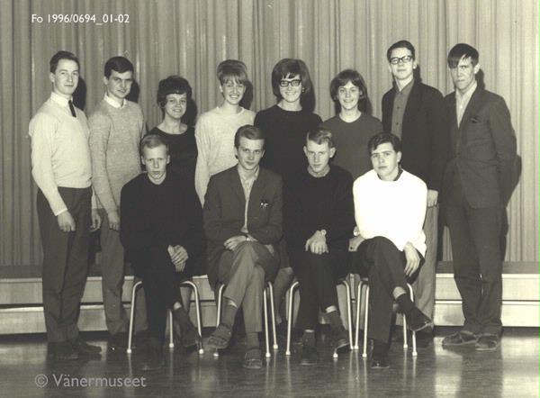 Numrering från vänster överst till höger nederst:. Översta raden stående 1. Göran Johansson, 2. Owe Malm, 3. Ulla Britt Andersson, 4. Inger Lundén, 5. Ulla Svensson, 6. Inga Tunblad, 7. Erik Svensson 8 Dag Nilsson.