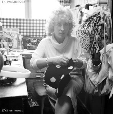 Dokumentation av modisten Elisabeth Örnehage i ateljé och butik.