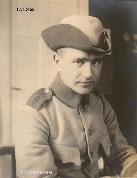 Paul Petersén, senare konstnär, under militärtjänst ca 1918. Landstormen?