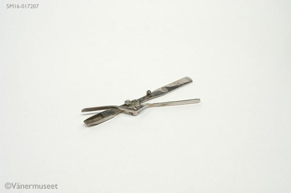 - Pulverdispenseringssked av rostfritt stål. På skaftets ovansida är instansat ...MESSLÖFFEL 1956, i en ring, siffran 1 samt längst ut: 19199. Graderad skala på högra skänkeln, med ställskruv. Vänstra skänkeln hålls ut med en liten fjäder.