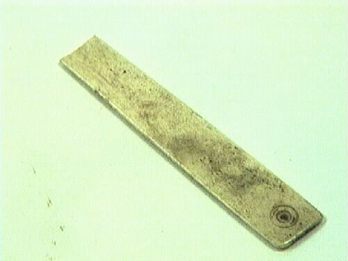 Falsben. Funktion: Bokbinderi. Användes vid arkens vikning-falsning. I ovanändan finns ett runt hål med två koncentriska cirklar runt. Spetsen på verktyget är avbruten.