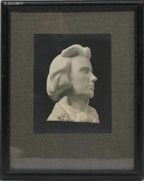 Fotografi av skulptur, del av, porträtt av Gunnar Wennerberg.