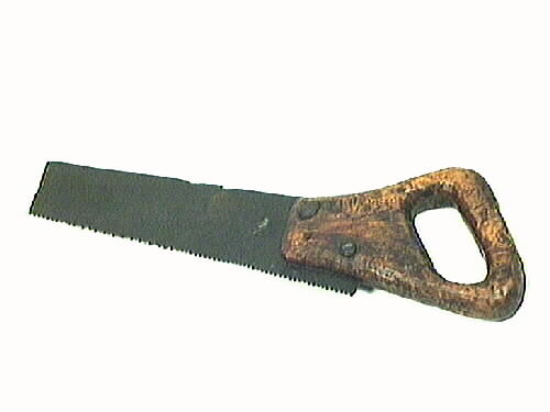 Fogsvans. Mindre modell med avbrutet sågblad. Handtaget i masurbjörk. Bladet är fäst med handsmidd spik i handtaget, en spik saknas. Bladet är 220 cm långt och rakt avskuret vid den främre avbrutna änden. Fogsvansen var utställd i avdelningen "Skeppsbyggeri" i muséet, Orionhuset fram till 1980.