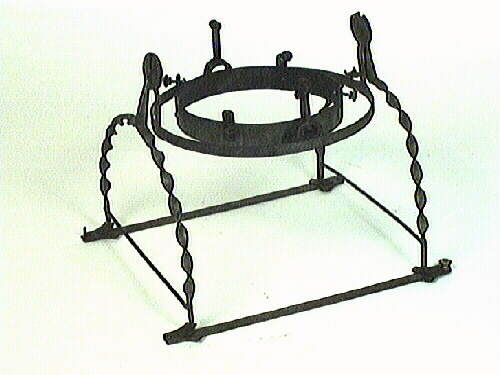 På var sida finns det smidda järn (vridna) som fungerar som upphängningsanordning. Två järnringar som båda är rörliga. Skruvar och muttrar för att spänna fast grytan. Präglat på ena ringen: "PRIM 1121. MADE IN SWEDEN". Har använts på familjen Tenggrens segelbåt Valkyrian.