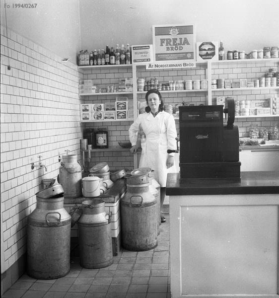 Lidköpings mejeri, mjölkbutik. Birädets namn okänt. Foto Mellgrens ateljé, Lidköping ca 1940-1960.