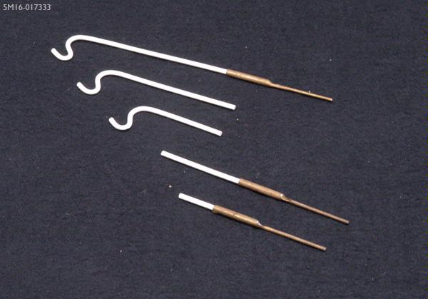 Lamphållarna av vitt keramiskt material 120 mm, samt hållare av mässing 60 mm. Två av hållarna har gått sönder och är i två delar.