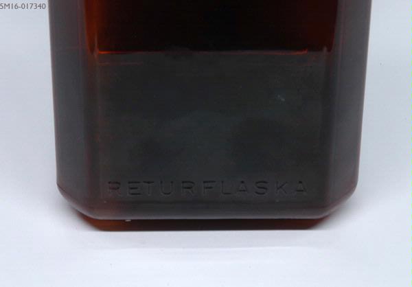 En brun plastflaska med vitt skruvlock för försäljning av mjölk. Flaskan är formblåst, medan plastloclket är formpressat.Volym en liter. Kvadratisk form med fasade kanter för volymeffektiva transporter. På en sida längst ned står RETURFLASKA i relief. Flaskan är återfyllningsbar och tillverkades under en ganska kort tid på försök åt ett mejeri i Örebro. I botten står PLM, 814123 i relief. PLM är företaget som tillverkat flaskan. Numret är verktygsnumret till det speciella verktyg som användes vid tillverkningen. Flaskan är tillverkad i PLMs fabrik i Tofta industriområde på Plastgatan i Lidköping.Nnuvarande ägare 2014 är Petainer AB. Den formsprutade korken är inte tillverkad av PLM. På insidan av korken står 41-879 i relief, samt 3 på andra sidan av korken. Här finns också ett litet B inom två "tak".