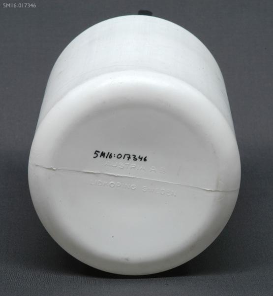 Flaskan tillverkades av Austria AB ca 1958-1965 och var avsedd för förvaring av mjölk. I botten står med relieftext: AUSTRIA AB, LIDKÖPING, SWEDEN.