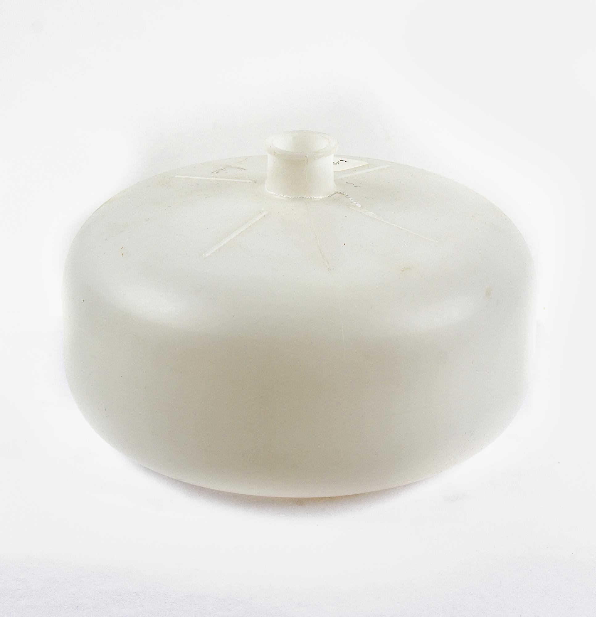En formblåst rund behållare av nästan genomskinlig plast, polyeten LD (low density), med en 25 mm hög hals i mitten av ena sidan. Behållarens öppning är 38 mm. Volymen är ca 3,9 liter.