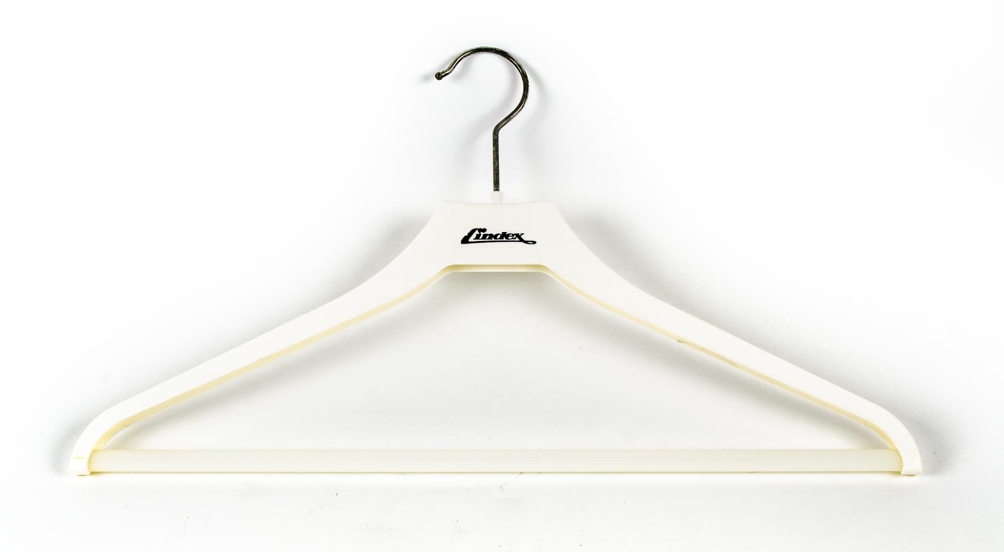 Klädhängare för damkläder, kappa och jacka, till Lindex tillverkad av vit polystyren. Klichén (Lindex) i svart trycktes på och brändes in. På ena sidan har texten Lindex i samma färg som hängaren. Hängaren är tillverkad som U-balk genom formsprutning medan den runda löstagbara underdelen för hängning av byxor är tillverkad genom strängsprutning. Denna del sattes i automatiskt. Kunde även levereras utan den runda del. Galgen är 246 mm hög, 449 mm bred och har ett djup på 14 mm.