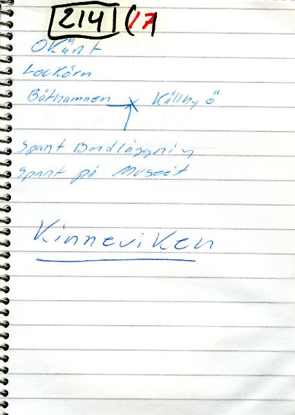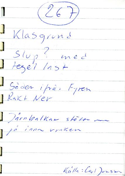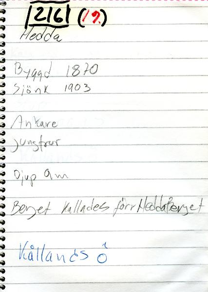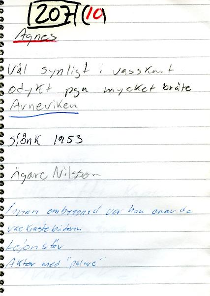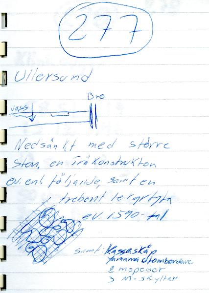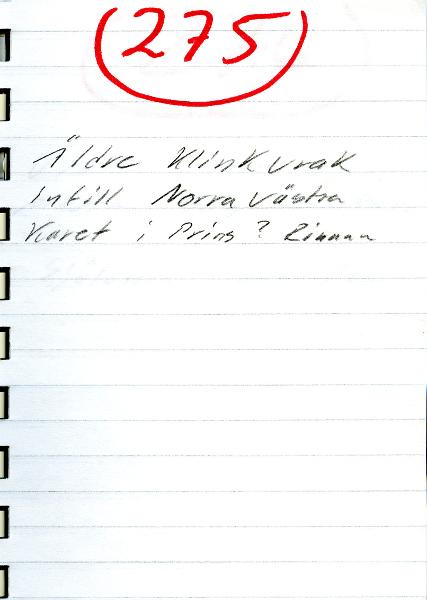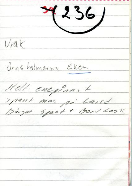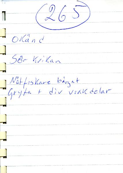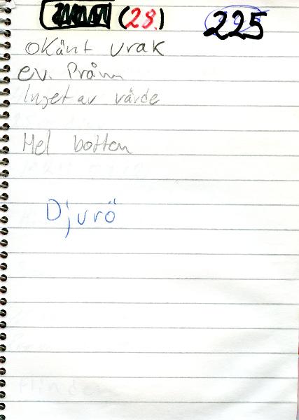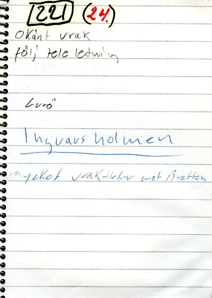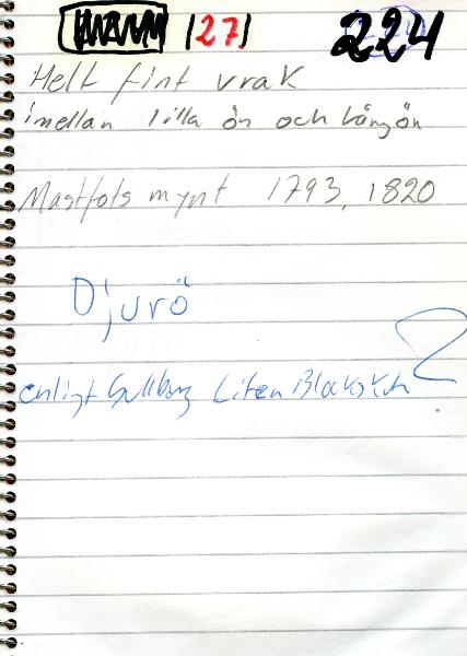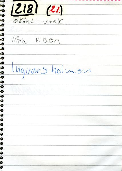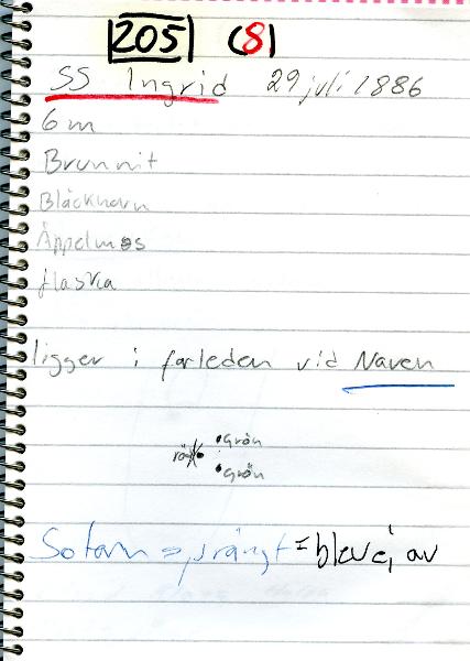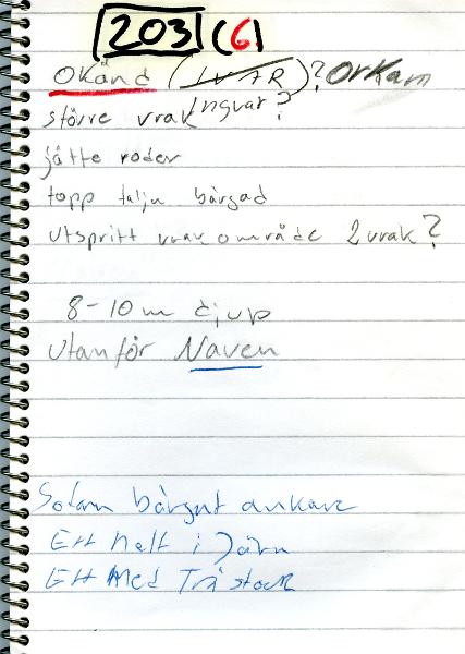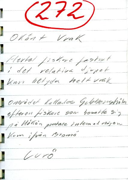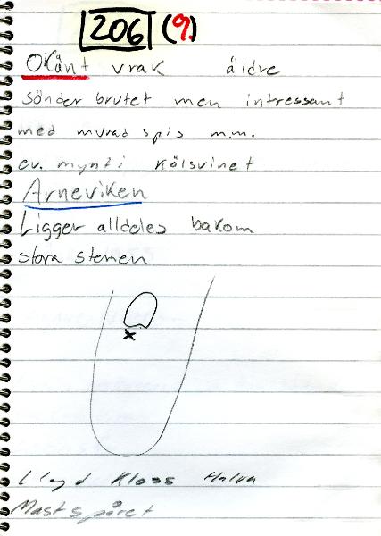 Denna dyklogg hör samman med sjökorten, (017377), och beskriver vrak hittade i Vänern av Vänermuseets marinarkeolog Roland Pettersson.