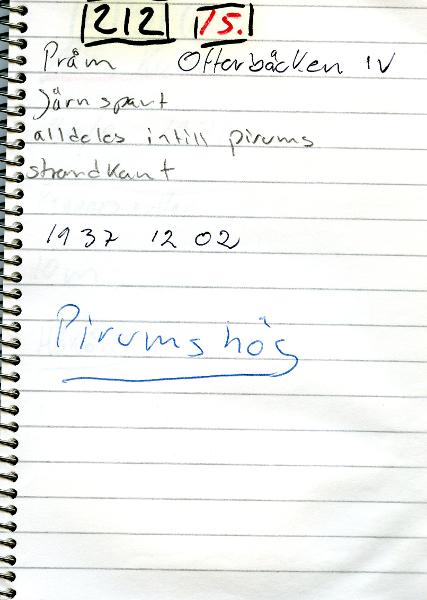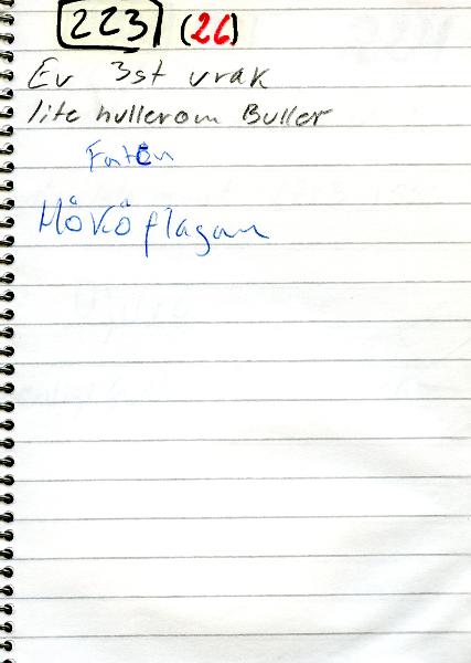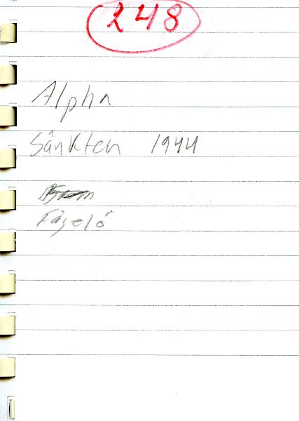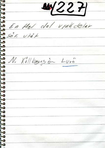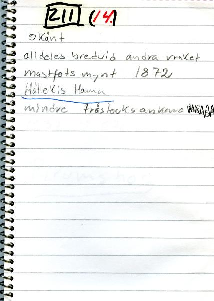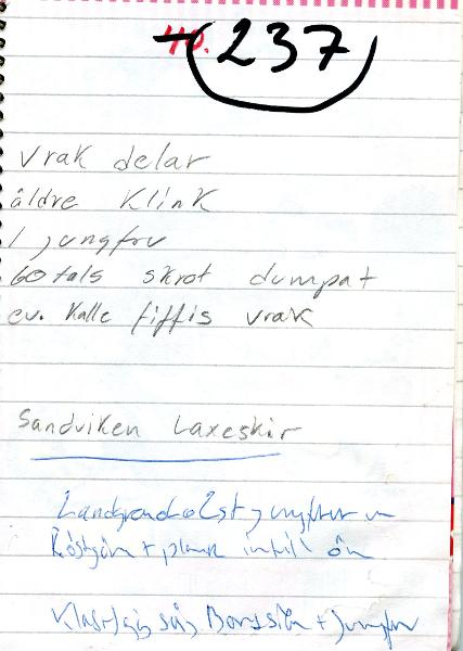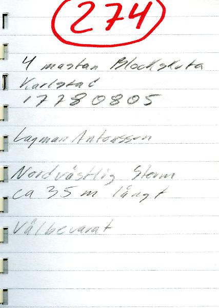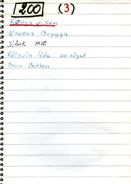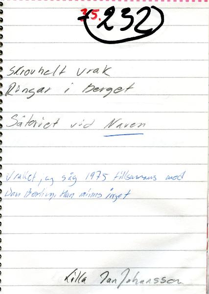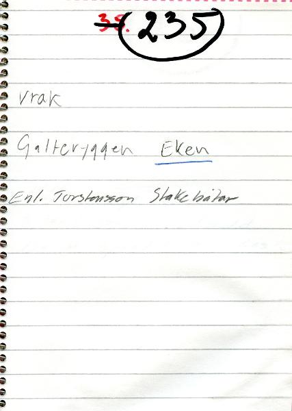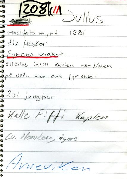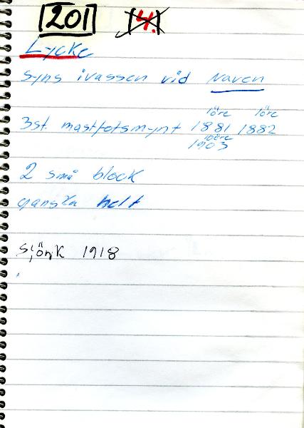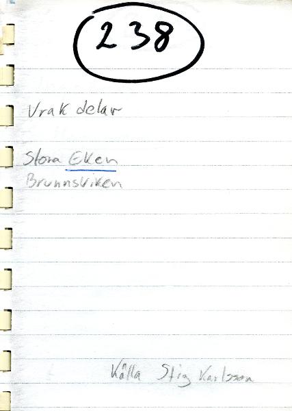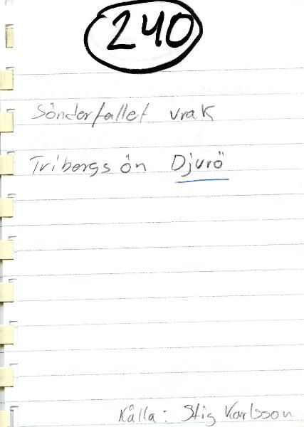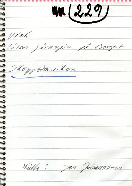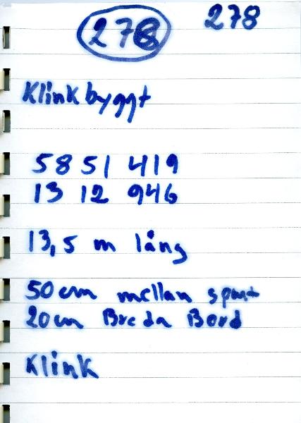 Denna dyklogg hör samman med sjökorten, (017377), och beskriver vrak hittade i Vänern av Vänermuseets marinarkeolog Roland Pettersson.