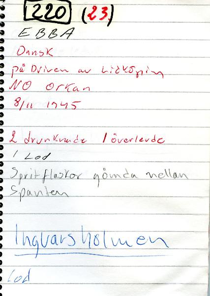 102 KARTOR OCH GEOGRAF.BELÄGENHET; 131 GEOGRAFISK BELÄGENHET; 172 ARKEOLOGI; 501:9 vrakfynd; 502:1 navigation, hjälpmedel; 502:3 förlisningar