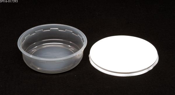 Matbytta tillverkad av ofärgad polypropen med ett vitt lock av polyetenplast, av PLM i deras fabrik i Tofta industriområde i Lidköping. Kommer direkt från fabriken.