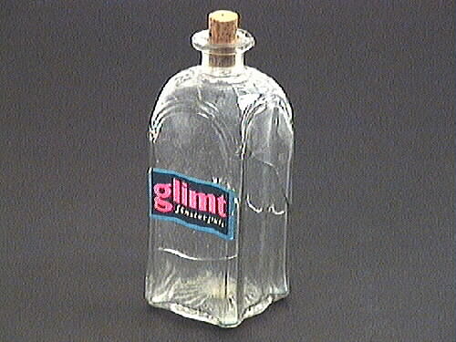 Flaska som har valvformade ränder formade efter flaskans modell upptill. Runt flaskans hals finns en relief där det står Barnängen. På en sida av flaskan är en pappersetikett påklistrad. Där står det: Glimt, fönsterputs.