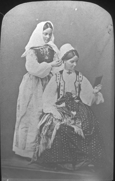 Okända flickor i folkdräkt.