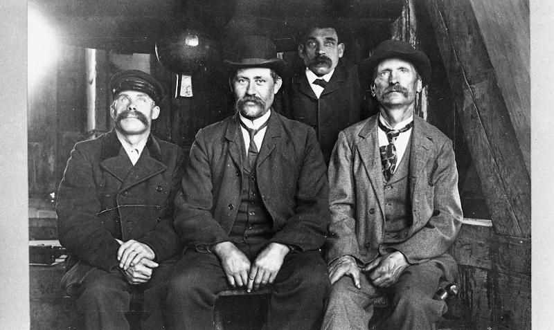 Gruppbild av fyra män i S:t Nicolaikyrkans torn.