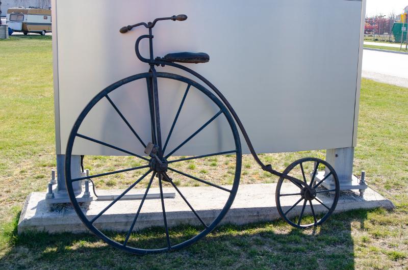 Cykel, en så kallad höghjuling, tillverkad av Carl Söderberg, född 1868-04-10, finsnickare och jordbrukare, på Fiskaregården, Tådene. Enligt uppgiftslämnaren, Anette Jacobsson, Lidköping, tillverkade han cykeln när han var i 18-årsåldern, dvs 1886 ca. Anettes farmor var fosterbarn till Carl Söderberg.
