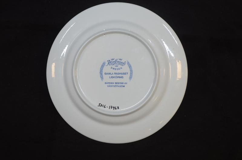 - Väggtallrik, rund 212 mm i diameter, tillverkad av Rörstrand. Dekor i blått mot vit botten. Gamla rådhuset i centrum omgivet av en inre och en yttre bård av västgötasömmens mönster. På undersidan finns Rörstrands logotyp samt texten: GAMLA RÅDHUSET LIDKÖPING, BÅRDEN BESTÅR AV VÄSTGÖTASÖM.