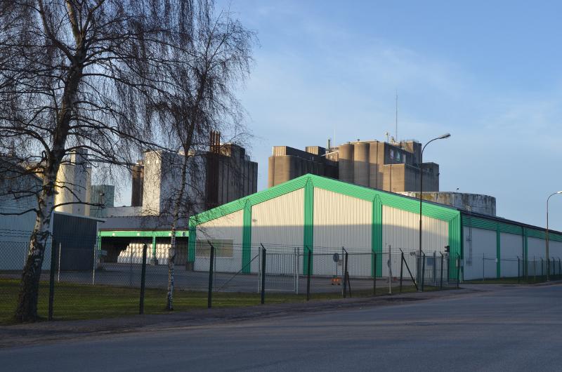 Lantmännens silosar sedda drån söder. I förgrunden ett av deras lager.