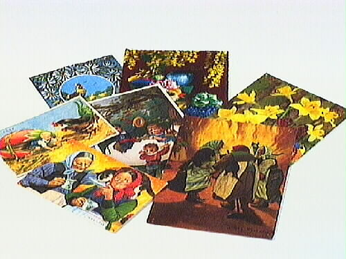 Alla påskkorten är i färg och märkta: "GLAD PÅSK".