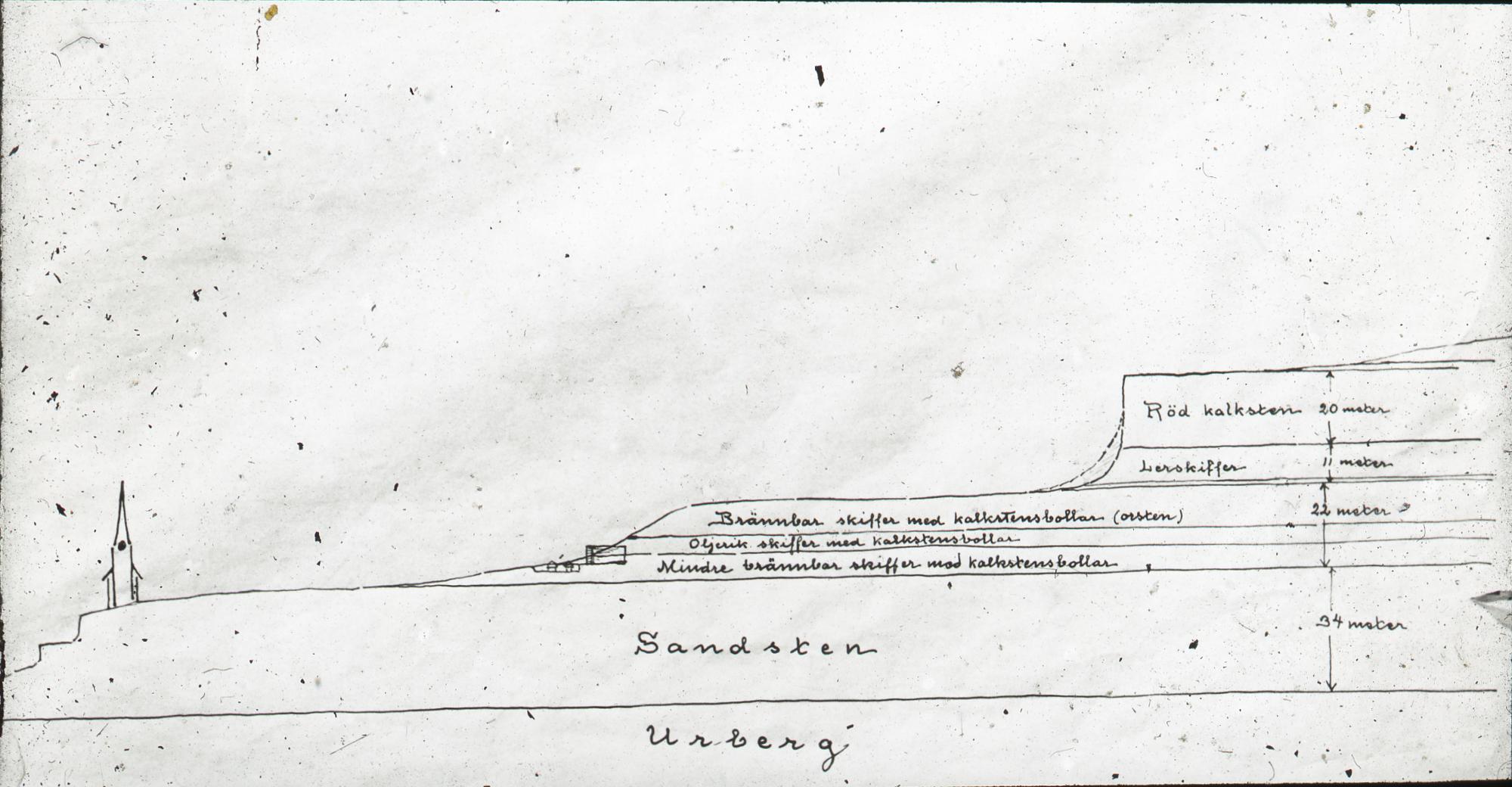 Brännbar skiffer med kalkstensbollar (osster?) 22 meter