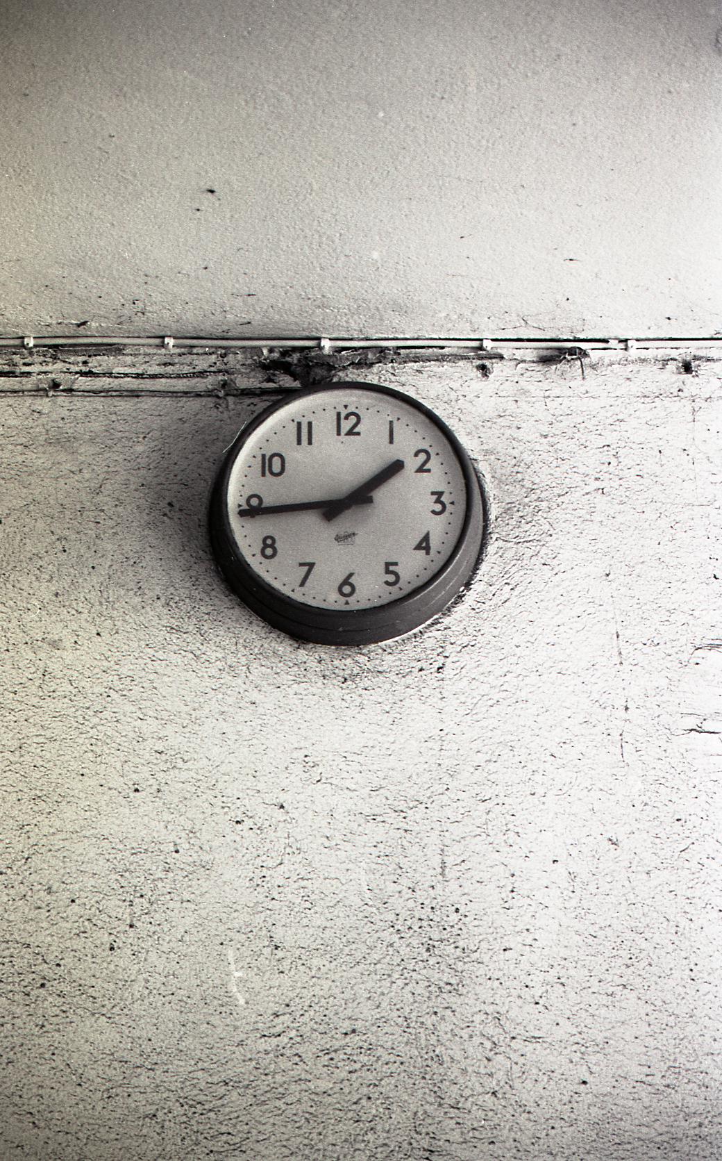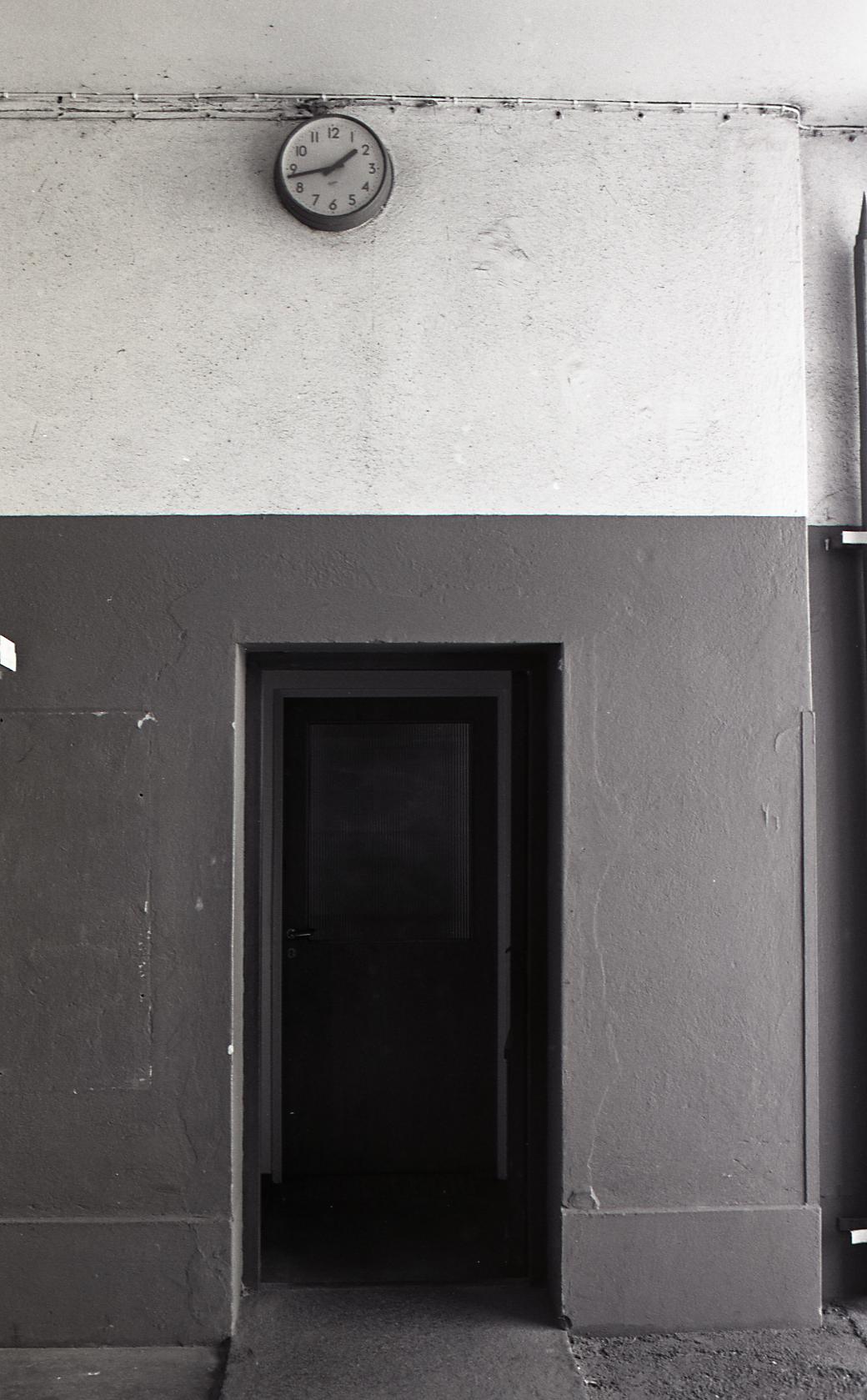 27: Hus 1. Klockan på väggen i stora portgången.
