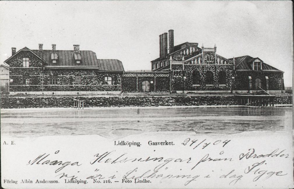 Reprofotografi av vykort föreställande Gasverket 24/7-1904.