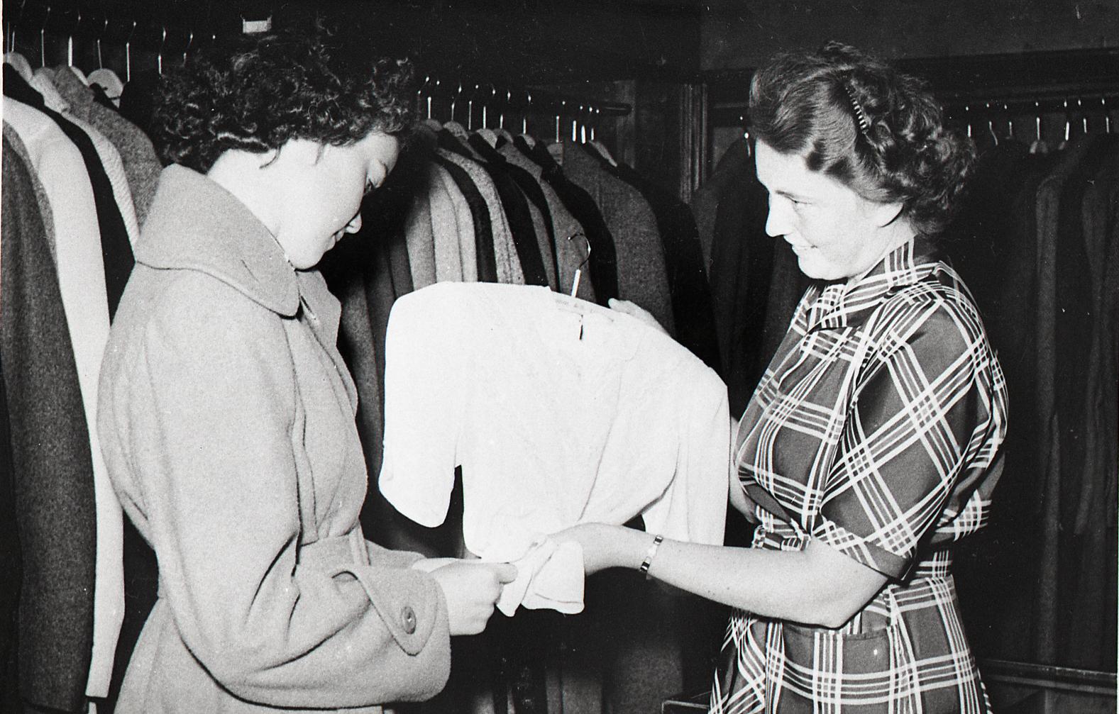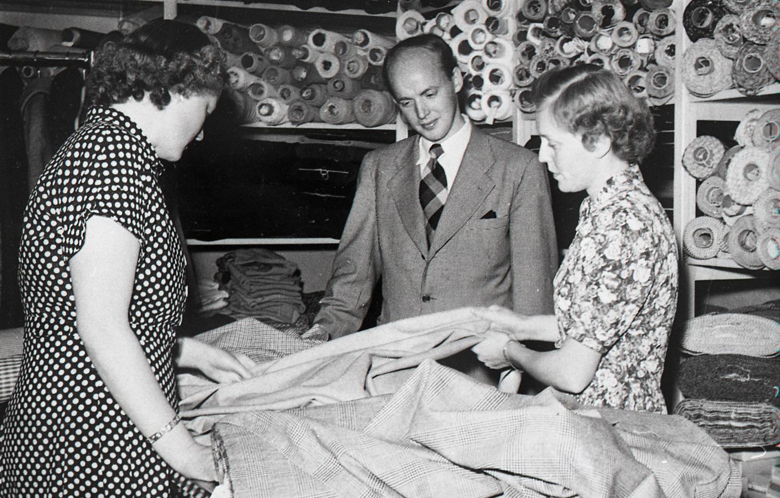 Undervisning i försäljningsteknik i Karl Anders kapp och manufakturaffär.