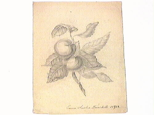 Teckning föreställande frukt på en gren, ev. äpplen.