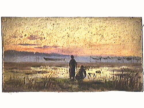 - Målning. I förgrunden två fiskarkvinnor, i bakgrunden nät på tork och förtöjd snipa, Kållandslandet: fonden. Gul ton, aftonljus. Text baktill: "Sanderna Lidköping". Givaren är dotterson till sjökapten Jacob Gideon Ahlberg (f 1844, d 1911) som var befälhavare på ångaren EOS I och II mellan 1867-1907. J G Ahlberg var även utbildad konstnär och genom honom och hans konstnärsskap har 30 år av Vänersjöfarten dokumenterats. Vänermuseet har en större samling av hans alster.