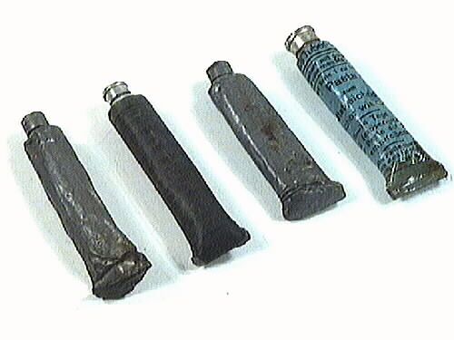 4-7. Tuber, mjuk, metall: Grå/Blå/Grön. Längd: 75 mm, bredd: 20 mm.