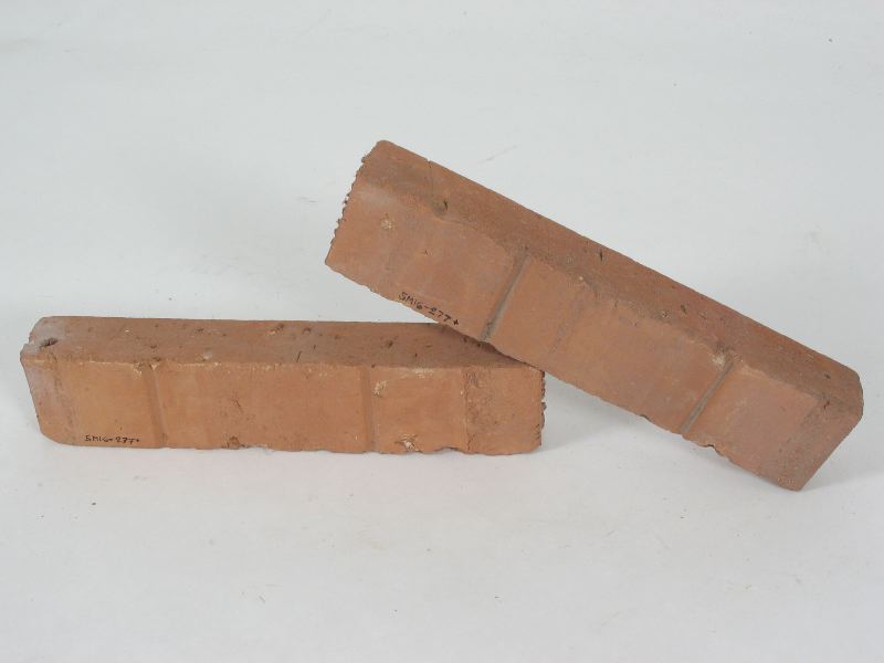 Litet 4-kantigt tegel, två stycken. Framsidans yta sandkornsbehandlad, göres med rulle.