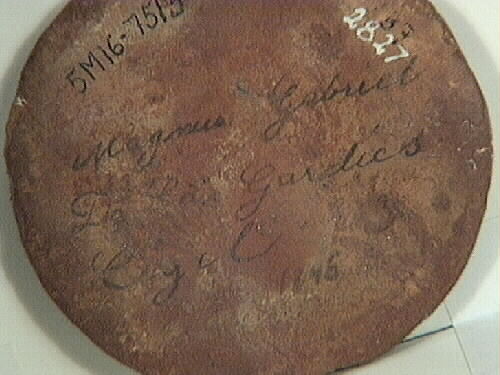 Sigillavtryck av lera, rund. Magnus Gabriel De la Gardies. Troligen använd till stämpling av de sk "Grevepepparkakorna", se tidskriften "Arte et Marte" årgång 1920, sid 39.