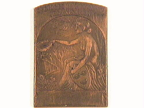 Sveriges Hantverksorganisations plakett av brons i svart fodral klätt med mörkblå sammet inuti. Tilldelad lärling för väl utfört gesällprov. Inskrift: SVERIGES HANTVERKS ORGANISATION.