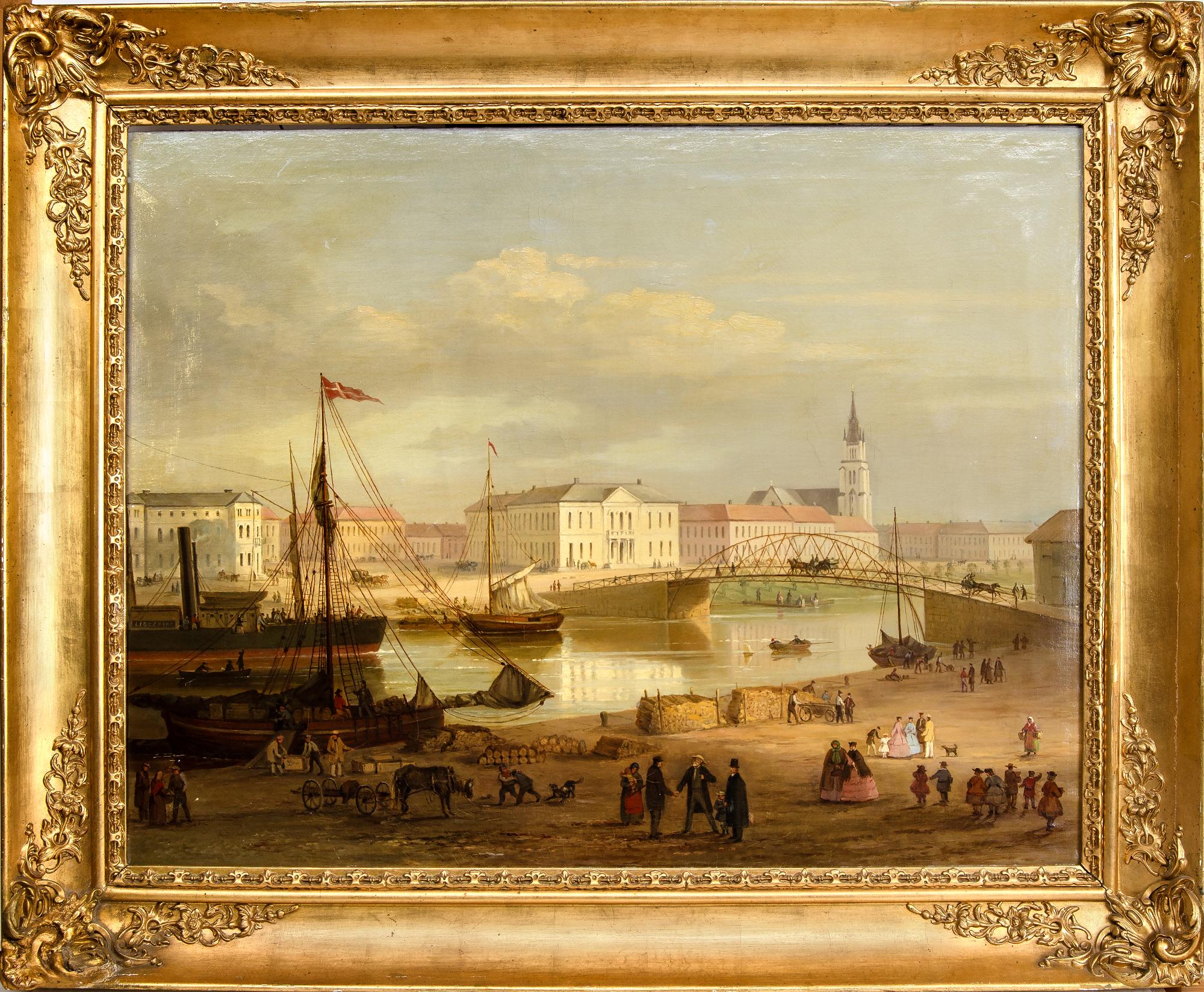 Oljemålning föreställande Gamla stadens torg, Lidan och gamla gjutjärnsbron sedda från västra hamnen utanför bryggeriet i Lidköping. Förgrundsfigurerna utgör enligt givaren, från höger: Stadens kyrkoherde (prosten Gunnar Wennerberg eller Anders Lexell) med en flicka vid handen, Edward Nonnen på Degeberg, provincialläkare PH Fredrik Graeve samt en kvinna med ett sjukt barn.