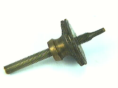 Pendel, urmakeri. Cylindriskt lod i gråmålad gjutjärn, rörlig på en rund träställning. I nedre delen ett mässingsfäste. Träställningen ej komplett.