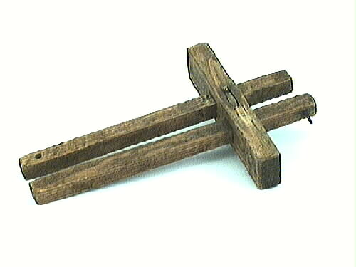 Ritsmått i trä med dubbla ritsstänger. Hål i den ena.