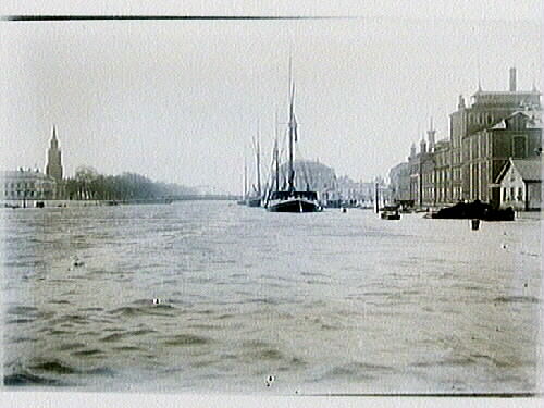 Skutor i Lidköpings inre hamn vid översvämningen 1910.