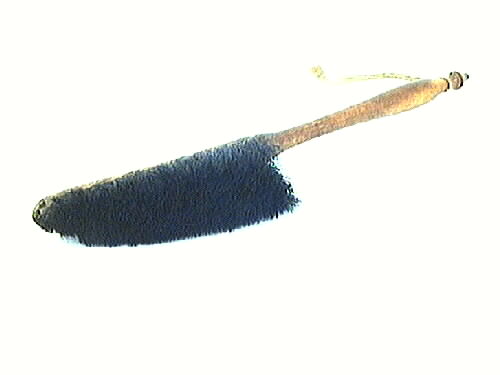 - Dammborste. Svarvat långt trähandtag med svart borst i knippen, 12 i längsled och maximalt 4 på bredden. Borsten är kortare och smalare mot spetsen. Snöre för upphängning vid skaftets ände, svarvad kula. Borsten har tillhört skräddare Erland Svensson, 1903-1972. Hans skrädderi låg på Målaregatan. Svensson kallades "Den billige skräddaren", "lappskräddaren". Han lagade kläder och ändrade kläder för affärer. Hans far och en bror var skräddare. Givaren är son till Erland Svensson.