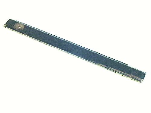 En trälinjal, som är svartmålad, med ena långsidan sluttande och den andra rak, med ett mässingband. I ena kortändan har linjalen ett hål för upphängning.