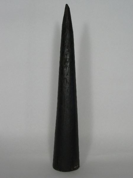 Märlprim, koniskt träföremål, tjärat. Primen användes vid splitsning av mycket grovt tågvirke. Primen är något sprucken.