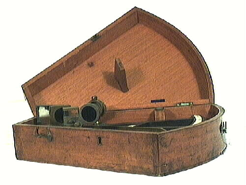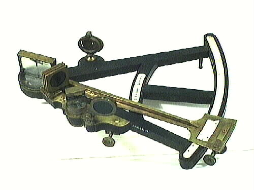 Oktant, för höjdmätning, i låda. Oktant är ett reflexionsinstrument för vinkelmätning, som användes på fartyg. Vinkeln mellan en himlakropp och horisonten avläses och med hjälp av denna vinkel kan fartygets position bestämmas.