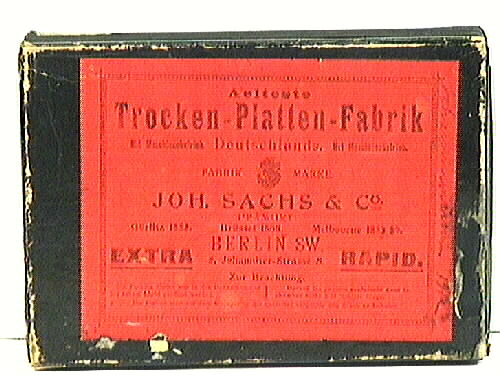 Kartong med lock i papp, klädd i svart blankt papper. En påklistrad röd etikett, med firmamärke, text på tyska och franska.