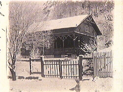 Vykortsfoto. Vy över A G Ahlbergs villa i Partille, "Lyckhem".