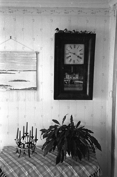 36. Interiör, klocka på väggen.